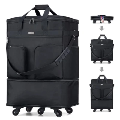 【Expandable foldable luggage】This foldable luggage folds compact for easy storage under the bed or sofa and you also can use it as a travel spare bag to pack in another suitcase and unfold it when you need it to bring back lots from your travels.After folding:L19*W13*5"; expand one layer:19*13*19.7",68L;expand two layers:19*13*27.2",98L,and it's a lightweight Luggage with 6.1lb,lighter than other suitcase and not to add baggage weight allowance. 【Expandable foldable luggage】This foldable luggage folds compact for easy storage under the bed or sofa and you also can use it as a travel spare bag to pack in another suitcase and unfold it when you need it to bring back lots from your travels.After folding:L19*W13*5"; expand one layer:19*13*19.7",68L;expand two layers:19*13*27.2",98L,and it's a lightweight Luggage with 6.1lb,lighter than other suitcase and not to add baggage weight allowance. 【Upgrade Expandable Suitcases with Wheels】 Bottom is widened and thickened, paired with 5 rotating wheels, providing stronger stability and making it easy to stand upright.No matter how many items we carry, they can be easily moved, making every trip easier and more enjoyable for us. 【Hight Quality and Durable Material】This expandable suitcase Using high-quality fabrics,wear resistant, tear resistant,exquisite workmanship,perfectly shuttle through major airlines,Many customers have suggested definitely recommend it as a viable alternative to the hard case type. It also has the advantage of being lighter in weight but larger in capacity compared to other suitcases. 【Easy Lifting with Multiple Handles】This large moving bags with removable shoulder strap,Top, side, and bottom handles.