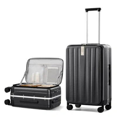 【CREATIVE FRONT OPENING】 Leading the future opening and closing method which is effortless to open or close the suitcase, not only is it easy to load, but it also saves space. This design solves the problem that traditional luggage separated 2 compartments of heavy load then it's difficult to open and close. Importantly, it also avoid the displacement of items. 【PRESS-BUTTON TSA LOCK】 One touch to unlock, which is safe and convenient, save both time and labour. This Hanke lock the hardside suitcase features with TSA008 encrypted lock cylinder, which is more secure and meets airline approved (No Key). 【HIGH QUALITY ACCESSORIES】Benefit from brand YKK zipper that is smooth and durable, providing you with more security when travel, 8 multi-directional spinner wheels for easy maneuvering and rolling, Adjustable 4-step telescopic handle system, with an ergonomic grip Lock. 【BETTER MATERIAL】This carry-on made of premium polycarbonate PC material that is more durable than ABS+PC, with diamond-shaped texture on the surface to prevent against scratches, so that the away suitcases can remain beautiful after a long trip. 【OVERRALL DIMENSION】Available in 3 different sizes, 20in 13.81''x9.25''x21.46'' (35x23.5x54.5cm), Weight: 7.91 lbs. Packing Capacity: 33.6 L. 24in 16.81''x10.43''x26.18''(43x26.5x66.5cm), Weight: 10.25 lbs. Packing Capacity: 55.8 L, 26in check in luggage 18.11''x11.42''x28.15'' (46x29x71.5cm), weight: 10.91 lbs. Packing Capacity: 72.6 L, all are included wheel. 【ANY OCCASION】An ideal suitcase for a holiday, trip or business travel. If any issue, welcome to email us directly, we will reply you within 24 hrs.