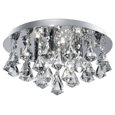 Indulge in the luxurious elegance of the Hanna 4 Light Ceiling Semi Flush Light, a perfect centerpiece for any contemporary space. This stunning ceiling fitting features a sleek chrome finish that exudes modern sophistication. Its design is complemented by exquisite diamond-shaped crystal droplets that capture and reflect light, creating a mesmerizing sparkle throughout the room.