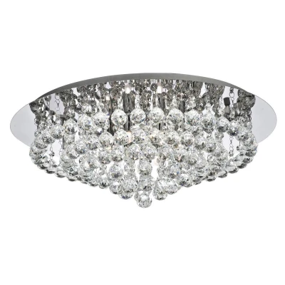 Net LightingThis Chrome 8 Light Ceiling Fitting with Clear Crystal Balls looks magnificent on any bedroom, living room, dining room or kitchen ceiling. The luxurious light fits flush to the ceiling and features eight lamps surrounded by decadent crystal trimmings and balls. And the elegant mirrored backplate completes the look of this large, contemporary chandelier.