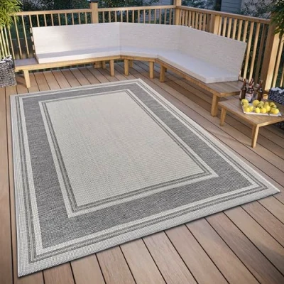 FLAT WOVEN OUTDOOR RUG - Durable rug with flat weave structure, ideal for outdoor use on patio, balcony or in the garden. WEATHERPROOF AND UV RESISTANT - The rug is specially designed to withstand a wide range of weather conditions and is also UV resistant to protect against fading from sunlight. Durable and easy to clean: this rug is extremely durable and can be easily cleaned with water and mild detergent. Suitable for underfloor heating: the rug can also be used indoors, such as living room, and is suitable for use on underfloor heating. Wide range of uses: the rug is not only suitable for outdoor use, but can also be used indoors as a stylish addition.