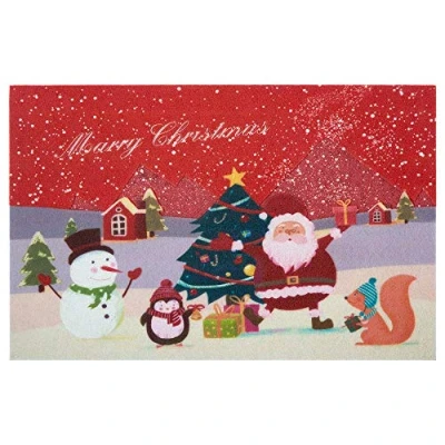 HANSE Home Christmas Doormat 45 x 70 cm Dirt Trapper Mat with Non Slip PVC Underside Merry Door Santa Snowman Motif Suitable for Outdoor and Indoor Use