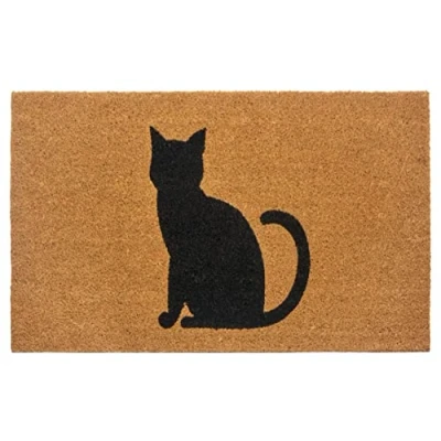 Hanse Home Coconut Doormat for Indoor Use 45 x 75 cm Door Mat Dirt Trapper Cat Design Non Slip Entrance Area & Covered Outdoor Natural