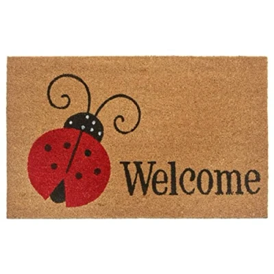 Hanse Home Coconut Doormat for Indoor Use 45 x 75 cm Door Mat Dirt Trapper Ladybird Welcome Design, Non Slip Entrance Area & Covered Outdoor Natural