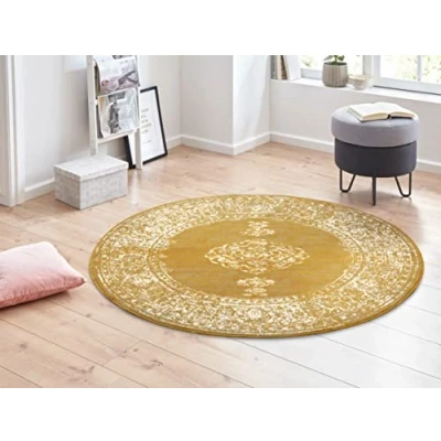 HANSE Home Gloria Orient Round Rug Diameter 160 cm Living Room Multicoloured Vintage Oriental Pattern for Hallway, Dining Room, Bedroom, Children's Kitchen Mustard