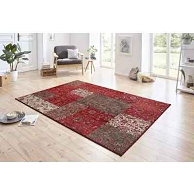 Hanse Home Kirie Patchwork Rug, Short Pile Modern Vintage Design Rugs for Dining Room, Living Children's Hallway, Bedroom, Kitchen Red Brown 120 x 170 cm