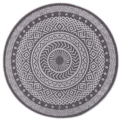 Hanse Home Laos Flat Weave Indoor and Outdoor Rug, Weatherproof, Oriental Boho Design for Balcony, Patio, Garden, Conservatory, Living Room Rug Waterproof, Grey/Light Grey, 160 cm, Round
