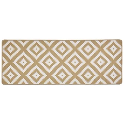 A modern accessory for the kitchen, which can be combined in many ways with different interior styles and sets a special accent in the kitchen Not only an eye-catcher, but also practical: high-quality workmanship made from 100% polyamide ensures durability, durability and easy care A non-slip latex backing prevents slipping even on smooth floors. The runner can also be easily laid out in all rooms with underfloor heating. A colour-coordinated edging rounds off the overall package perfectly. Care instructions: vacuuming runners regularly. For cleaning the waste, we recommend a standard carpet foam. Technical data: material: 100% polyamide; total height: approx. 9 mm; total weight: approx. 1800 g/m². Box contents: Hanse Home kitchen runner, short pile rhombus runner (67 x 180 cm, non-slip back coating, bound all around, durable and easy to clean), beige