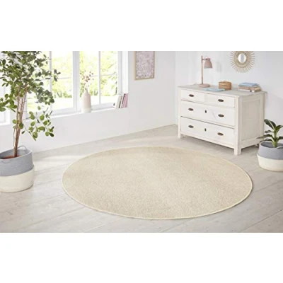 Hanse Home Nasty Round Rug Living Room Fluffy Short Pile Plain Colours for Dining Room, Children's Hallway, Bedroom, Kitchen Cream, 133 cm