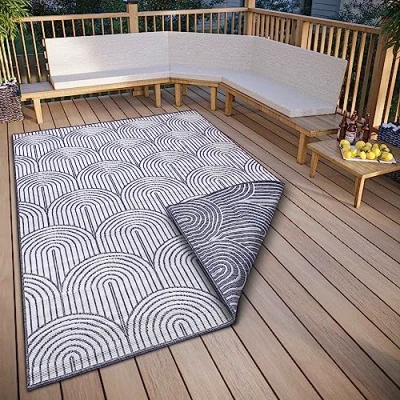 Weatherproof and waterproof outdoor carpet: enjoy this robust outdoor carpet, specially designed for outdoor use and can withstand even the most adverse weather conditions. MULTI-PURPOSE - Whether in the garden, on the patio or even in the living room, this rug will add a touch of boho charm and Scandinavian flair to any room. HEAVY DUTY DESIGN - The durable material and meticulous weaving pattern make this rug perfect for high traffic areas and ensures long-lasting performance. Easy to clean: thanks to its waterproof properties, you can simply rinse it with water or clean it with a mild detergent to keep it clean and fresh. Durable and colour-fast: the high-quality material and careful workmanship ensure that this outdoor rug retains its colour intensity and beauty even during intensive use and sunlight.