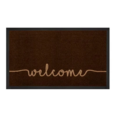 Hanse Home Printy Doormat for Indoor and Outdoor Use, 45 x 75 cm, Dirt Trapper Mat, Cosy Welcome with Lettering, Washable & Weatherproof, Non Slip Entrance Area Use Dark Brown Beige