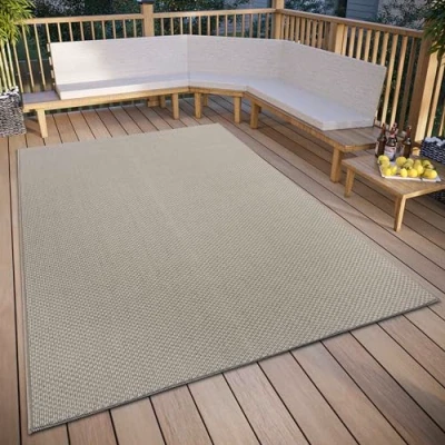 FLAT WOVEN OUTDOOR RUG - Durable rug with flat weave structure, ideal for outdoor use on patio, balcony or in the garden. WEATHERPROOF AND UV RESISTANT - The rug is specially designed to withstand a wide range of weather conditions and is also UV resistant to protect against fading from sunlight. Durable and easy to clean: this rug is extremely durable and can be easily cleaned with water and mild detergent. Suitable for underfloor heating: the rug can also be used indoors, such as living room, and is suitable for use on underfloor heating. Wide range of uses: the rug is not only suitable for outdoor use, but can also be used indoors as a stylish addition.