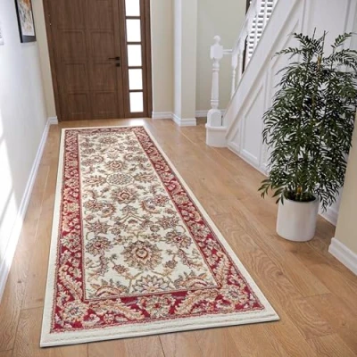 HANSE Home Reni Oriental Rug Runner Classic Tightly Woven with Ornaments and Flower Motifs Soft Short Pile for Bedroom, Dining Room, Living Hallway Cream Red, 80 x 240 cm