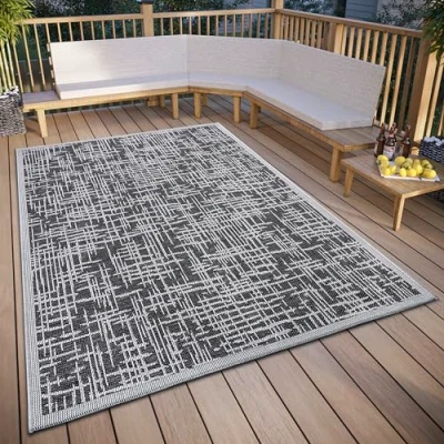 FLAT WOVEN OUTDOOR RUG - Durable rug with flat weave structure, ideal for outdoor use on patio, balcony or in the garden. WEATHERPROOF AND UV RESISTANT - The rug is specially designed to withstand a wide range of weather conditions and is also UV resistant to protect against fading from sunlight. Durable and easy to clean: this rug is extremely durable and can be easily cleaned with water and mild detergent. Suitable for underfloor heating: the rug can also be used indoors, such as living room, and is suitable for use on underfloor heating. Wide range of uses: the rug is not only suitable for outdoor use, but can also be used indoors as a stylish addition.