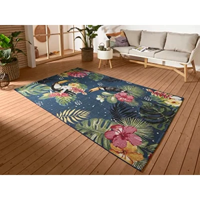 HANSE Home Tropical Dream Indoor & Outdoor Rug Flat Weave Jungle Floral Palm Tree Design, Oeko Tex Weatherproof UV Resistant for Balcony, Patio, Garden, Blue Multicoloured, 160 x 235 cm