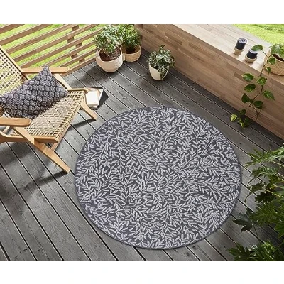 Hanse Home Twig Indoor and Outdoor Rug Round Branch Pattern Weatherproof & Waterproof Flat Weave for Living Room, Hallway, Patio, Garden, Balcony Grey Cream, 120 cm