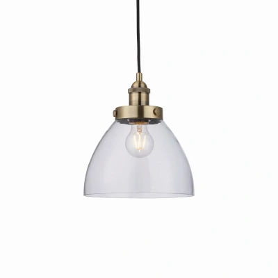 Hansen 1 Light Pendant Glass, Antique Brass Plate, E27