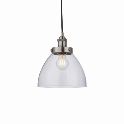 Hansen Dome Pendant Light Brushed Silver Paint, Clear Glass