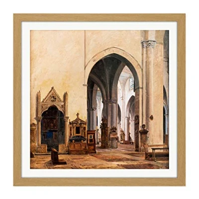 Hansen Interior St Maria Minerva Rome Painting Square Wooden Framed Wall Art Print Picture 16X16 Inch