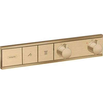 Individual appearance: the high-quality, brushed surface in bronze tone creates a harmonious, warm ambience. Premium design: the slim silhouette with large buttons and high-quality surfaces in bronze tone creates an impressive elegance. flush-mounted tap for controlling 2 functions: for example connection of 1 shower head and 1 hand shower RPA202023. 320233 More comfort: the thermostat reliably maintains the desired temperature and protects against too hot or too cold water even in case of pressure fluctuations. More safety: a button on the handle releases hot water only if desired and prevents a too high temperature (SafetyStop). Easy water control: large buttons turn the water on and off - just like a light switch (Select). on a Manufactured to the highest quality standards, Weight: 8.157103694 Pounds, Manufacturer: Hansgrohe