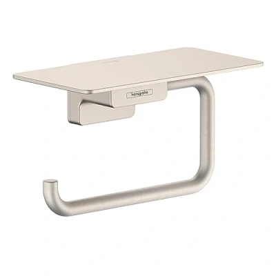 hansgrohe 41772820 AddStoris Toilet Paper Brushed Nickel GPM Roll Holder with Shelf