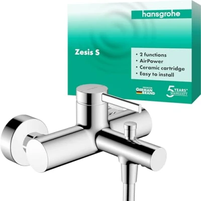 Zesis S: a design that invites you to relax. Even when it comes to the price High-quality bath mixer that controls 2 functions: Bath tub and shower head Quick filling of the bath tub: at up to 20 l/min. (at 3 bar), let the bath-time fun start right away This tap enriches the water with air for a full water jet with less splash (AirPower) Easy to clean: thanks to the purist design, the tap is quickly clean again Easy to install: Thanks to exposed installation, the wall does not have to be opened up. S-connections included Any standard shower hose can be connected to the water outlet for the shower head, Weight: 4.04989175294 Pounds, Manufacturer: Hansgrohe