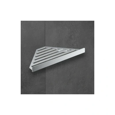 The AddStoris collection offers products like a metal soap basket for corner mounting, providing a tidy solution for toiletries while ensuring easy access. The 305 mm wide shelf is not only functional but also adds a touch of sophistication to the bathroom decor. Its brilliant chrome finish is not only visually striking but also easy to clean, retaining its dazzling appearance over time.