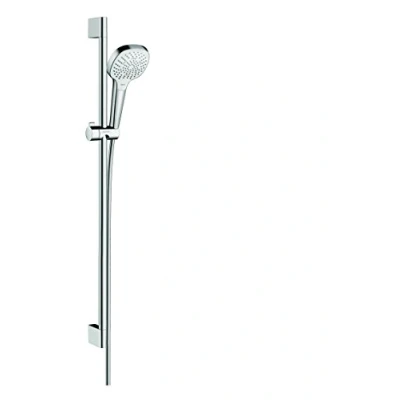 Shower set consists of: hand shower (110 mm), shower rail (0.90 m), shower holder and an anti-kink shower hose (1.60 m) Comfortably switch between 3 different spray modes at the touch of a button: SoftRain, IntenseRain, massage Remove limescale easily and fast with your fingertips from the flexible silicone nozzles with the hansgrohe QuickClean technology Suitable for high pressure only High-quality, durable shower set – 5 year warranty, Weight: 5.0 Kilograms, Manufacturer: Hansgrohe