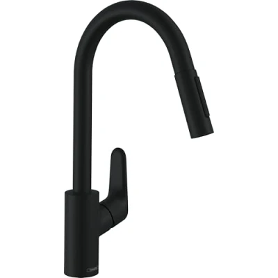 Hansgrohe Focus M41 Single Lever Kitchen Mixer 240 With Pull Out Spray, 2 Spray Modes, Matt Black, 31815670