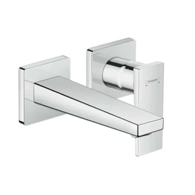 hansgrohe Metropol bathroom tap conceiled for wall mounting with waste set, sink spout length 22,5 cm, basin mixer water saving (EcoSmart), chrome, 32526000