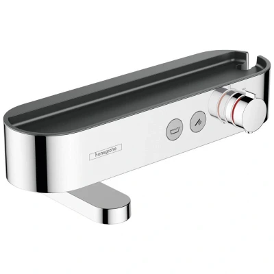 General description The Hansgrohe ShowerTablet Select Bath/shower thermostat 400 is designed for exposed installation and features a shelf and a rotating spout. This innovative thermostat allows for simultaneous use of two outlets, providing convenience and efficiency in your bathing experience. Technical specifications Centre distance: 150 mm ± 12 mm Maximum flow rate (at 3 bar): 18.7 l/min for bath spout Maximum flow rate (at 3 bar): 18.7 l/min for hand shower Minimum operating pressure: 1 bar Maximum operating pressure: 10 bar Weight: 2.9 kg Compatibility and accessories Includes a hand shower and bath tub Dirt filter included For use with a universal (negative head) pump if running with a pump Installation Exposed design allows for easy installation with all working parts outside of the wall Temperature can be adjusted during installation Usage Volume control regulates up to 30% of the water flow CoolContact thermostat prevents the housing from heating up for safer showering