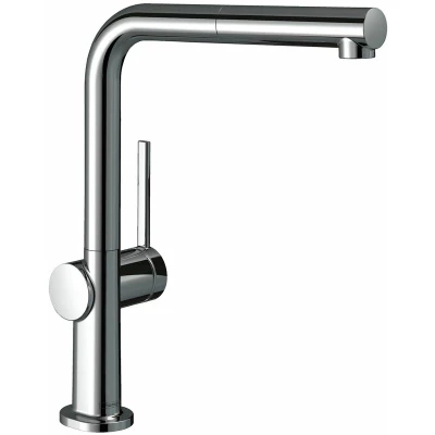 General description The Talis collection from Hansgrohe showcases exceptional design, having won multiple awards and featuring a wide range of products that incorporate innovative technologies and functions. This kitchen mixer tap combines performance, style, and comfort with its modern chrome finish and single lever design, making it an ideal addition to any kitchen. Technical specifications Swivel range adjustable in 4 steps: 60°, 110°, 150°, or 360° Maximum flow rate at 3 bar: 9 l/min Suitable for high pressure systems only (over 1.0 bar) 35mm tap hole diameter Connection dimension: DN15 Connection type: G ⅜ Material: Brass Tap Type: Kitchen Mixer Style: Modern - Round Colour: Chrome Tap Control: Single Lever Spout: Pull-Out Tap Holes Required: 1 Fitting: Deck Mounted Pressure Suitability: High (1 bar+) Installation Temperature limitation can be set during installation to protect vulnerable users against excessively hot water. Usage Pull-out spout allows easy access to