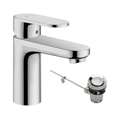 hansgrohe Vernis Blend Basin Mixer Tap 100 with metal pop up waste set, chrome, 71559000