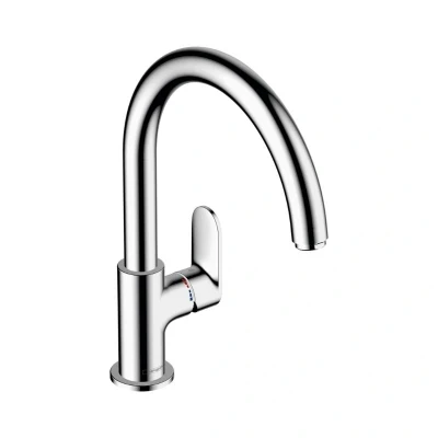 hansgrohe Vernis Blend M35 Single Lever Kitchen Mixer 210 with Swivel - Chrome The hansgrohe Vernis Blend M35 single lever kitchen tap 260 with swivel spout impresses users with its harmonious design and maximum comfort. The timeless design with its tall spout and large gap between spout and sink basin (ComfortZone 260) makes room for the daily kitchen routine and enables even the largest of containers to be filled with ease. The kitchen tap’s 120° or 360° swivel area is defined during installation, making it the perfect fit for a wide range of sinks. So you could say the Vernis Blend tap brings tried-and-tested hansgrohe quality to the kitchen at an attractive price. Long-lasting functionality and permanent shine The water quantity and temperature can be set using the user-friendly and ergonomically shaped handle. It controls the high-quality hansgrohe ceramic mixer system and does not loosen, even after frequent use. The Vernis Blend kitchen tap enriches the water with air for a full water jet with less splash (AirPower). Normal spray AirPower: As water enriched with air makes the droplets plumper, lighter and softer. This means you use your water more efficiently. Maximum flow rate (at 3 bar): 11.1 l/min Operating pressue: min. 1 bar / max. 10 bar Ceramic cartridge ComfortZone 210 provides space for greater freedom of movement Genuine brand new hansgrohe product, covered by a hansgrohe manufacturer's guarantee.