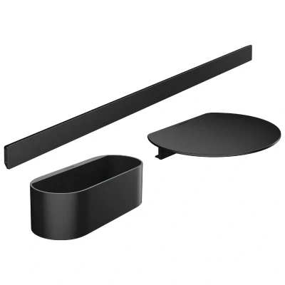 Hansgrohe WallStoris Bathtub Bundle - Matt Black (27966670). Consists of: wall bar, shelf, storage basket. Material: plastic dyed through. Wall-mounted. Ideal for tiles, glass, metal. Application - glue or drill. Including gluing set. Accessory can be clicked onto the wall bar. Storage for squeegee. Ideal to store shampoo, shower gel, razors. Dishwasher safe, easy to clean. Concealed fastening. Genuine brand new hansgrohe product, covered by a hansgrohe manufacturer's guarantee.