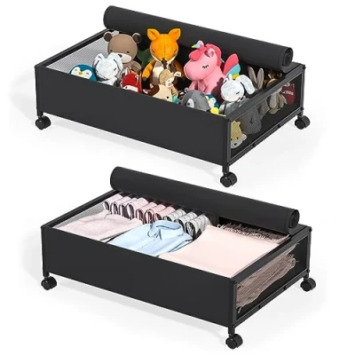 Hanstore Under Bed Storage with Wheels, Underbed Box Lid, Metal Drawer Containers, Rolling for Shoes Clothes Toys Snacks Books(2 Pack)