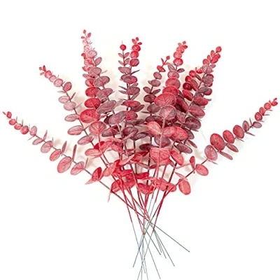 HAOSHICS 10Pcs Artificial Eucalyptus,Fake Eucalyptus Leaves Stem,Faux Buquets for DIY Flower Craft Wedding Party Home Office Table Centerpieces Decor (Red)