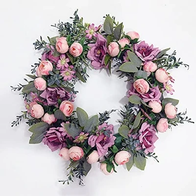 HAOSHICS Artificial Flower Hanging Wreath, Faux Garland Front Door Wreath,Artificial Wreath for Wedding, Party, Home, Wall, Window Decor (Purple Rose)