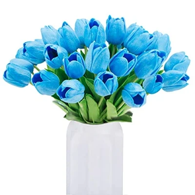 HAOSHICS Artificial Tulips Fake Holland Tulip Real Touch Bouquet Flowers Latex for Wedding Home Hotel Party Garden Decor, Multicolor 10PCS (Blue)