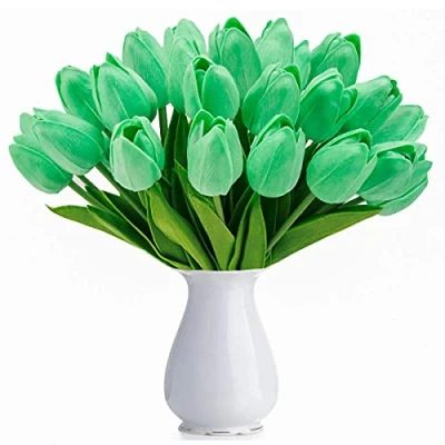 HAOSHICS Artificial Tulips Fake Holland Tulip Real Touch Bouquet Flowers Latex for Wedding Home Hotel Party Garden Decor, Multicolor 10PCS (Green)