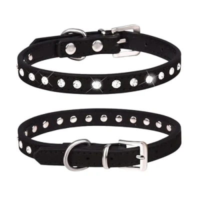 haoyueer Cute Dazzling Sparkling Elegant Fancy Suede Leather 1 Rows Bling Rhinestone Crystal Jeweled Small Pet Cat Dog Puppy Collar … (M, Black)