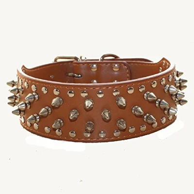 haoyueer Faux Leather Spiked Studded Dog Collar for Medium Large Dogs Pit Bull Mastiff Bully Boxer (L, Light Brown)
