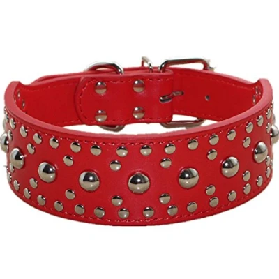 haoyueer New Unisex Studded Leather Dog Collars Medium Large Necklace for Pitbull Doberman Sizes M L … (L, Red)