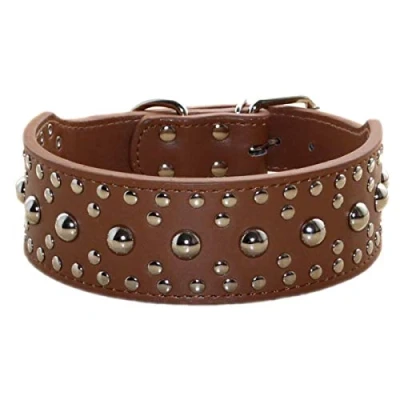 haoyueer New Unisex Studded Leather Dog Collars Medium Large Necklace for Pitbull Doberman Sizes M L … (M, Brown)