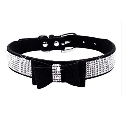 Haoyueer Rhinestone Dog Collar, Cute Dazzling Sparkling Soft Suede Leather Cat Collar Crystal Diamond Pet Puppy (S, Black 1)