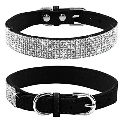Haoyueer Rhinestone Dog Collar, Cute Dazzling Sparkling Soft Suede Leather Cat Collar Crystal Diamond Pet Puppy (S, Black)