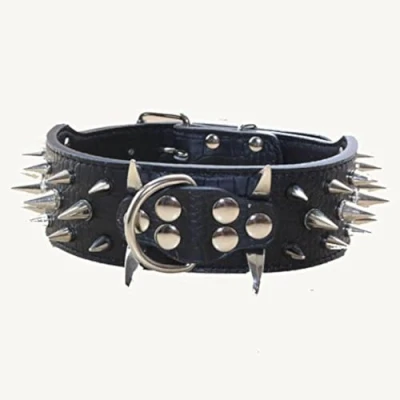 haoyueer Sharp Spiked Studded Dog Collar 2 Inch Width Stylish Leather Collars for Medium & Large Dogs Pitbull,Labrador,Boxer Rottweiler German Shepherd … (M, Black)