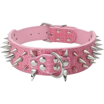 haoyueer Sharp Spiked Studded Dog Collar 2 Inch Width Stylish Leather Collars for Medium & Large Dogs Pitbull,Labrador,Boxer Rottweiler German Shepherd … (S, Pink)