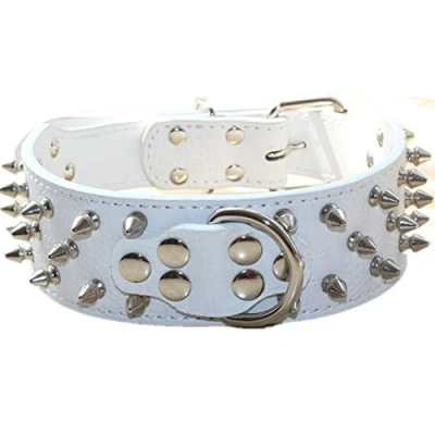 haoyueer Spiked Leather Dog Collar Bullet Rivets Studded 2 Inch Width Stylish Collars for Medium & Large Dogs Pitbull … (M, White)