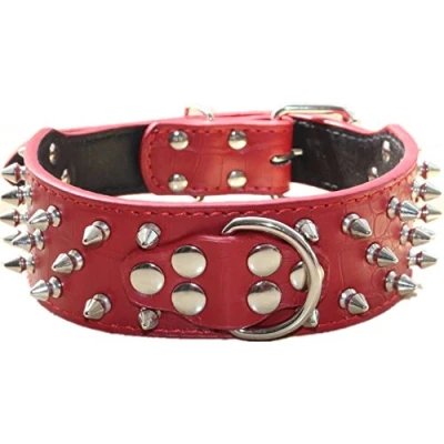 haoyueer Spiked Leather Dog Collar Bullet Rivets Studded 2 Inch Width Stylish Collars for Medium & Large Dogs Pitbull … (XL, Red)